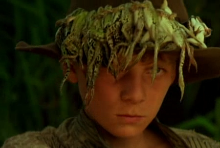Bertolucci suspends the boys' parallel childhood friendship in a capsule of familiarity when each are burgeoning on puberty. Against Storaro's wide-lens landscape, Olmo is a vision of an Italian Huck Finn, full of vigor with a brown floppy felt hat adorned with twenty squirming frogs on a piece of wire. These are the same frogs that Olmo uses to chase off a girl who insults him, and that Alfredo will later spit out that night at his family's perfectly set dinner table.